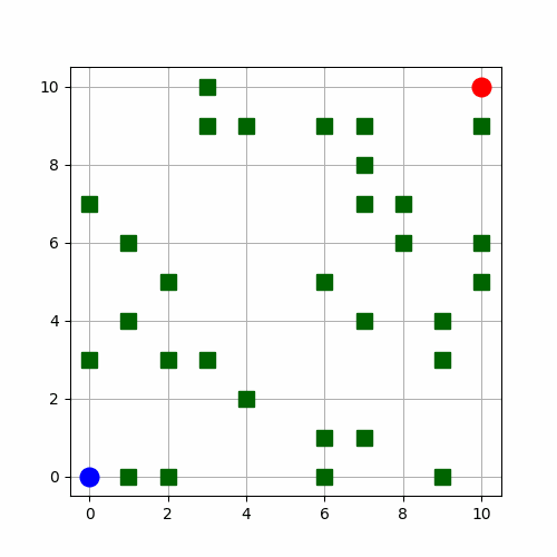 ※参考4 2台の自律制御のロボット(赤と青)が空間上の旗を回収するアルゴリズム